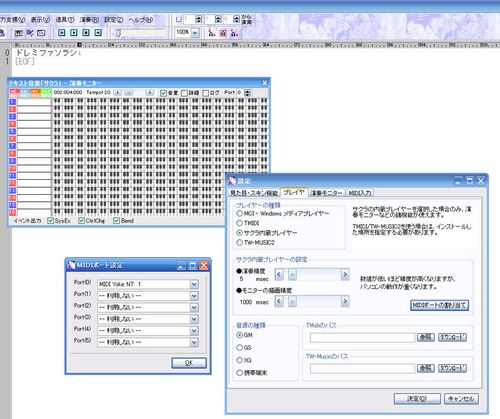 MMLエディタ『サクラ』で、VSTiを鳴らせる環境を構築。 どうせ後で忘れる(笑)のでメモ。■サクラ側の設定 『設定』→『プレイヤ』→『MIDIポートの割り当て』で、『MIDIポート設定』を『MIDI Yoke』に。(番号は必要に応じて適当に) 『設定』→『MIDI入力』で…